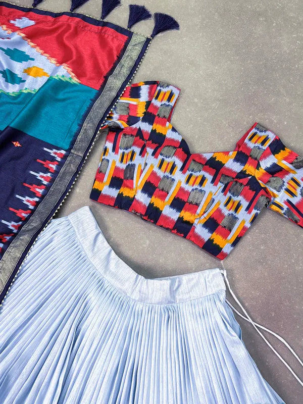 Sky Blue Color Tussar Silk Printed Navratri Lehenga Choli